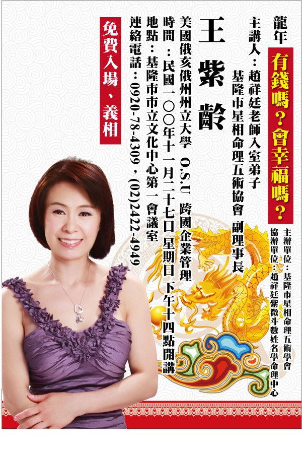 在此本人提出兩點星海羅盤葉 教授的E-mail所提的是:〔一.太陰在疾厄,則命宮坐七殺在辰,則田宅坐天同巨門又逢生年忌;二.天粱逢文昌在官祿宮,則田宅坐武曲天相〕若預知詳情狀況請於100年11月27日下午14.00前入場在基隆市立文化中心第一會議室,免費入場